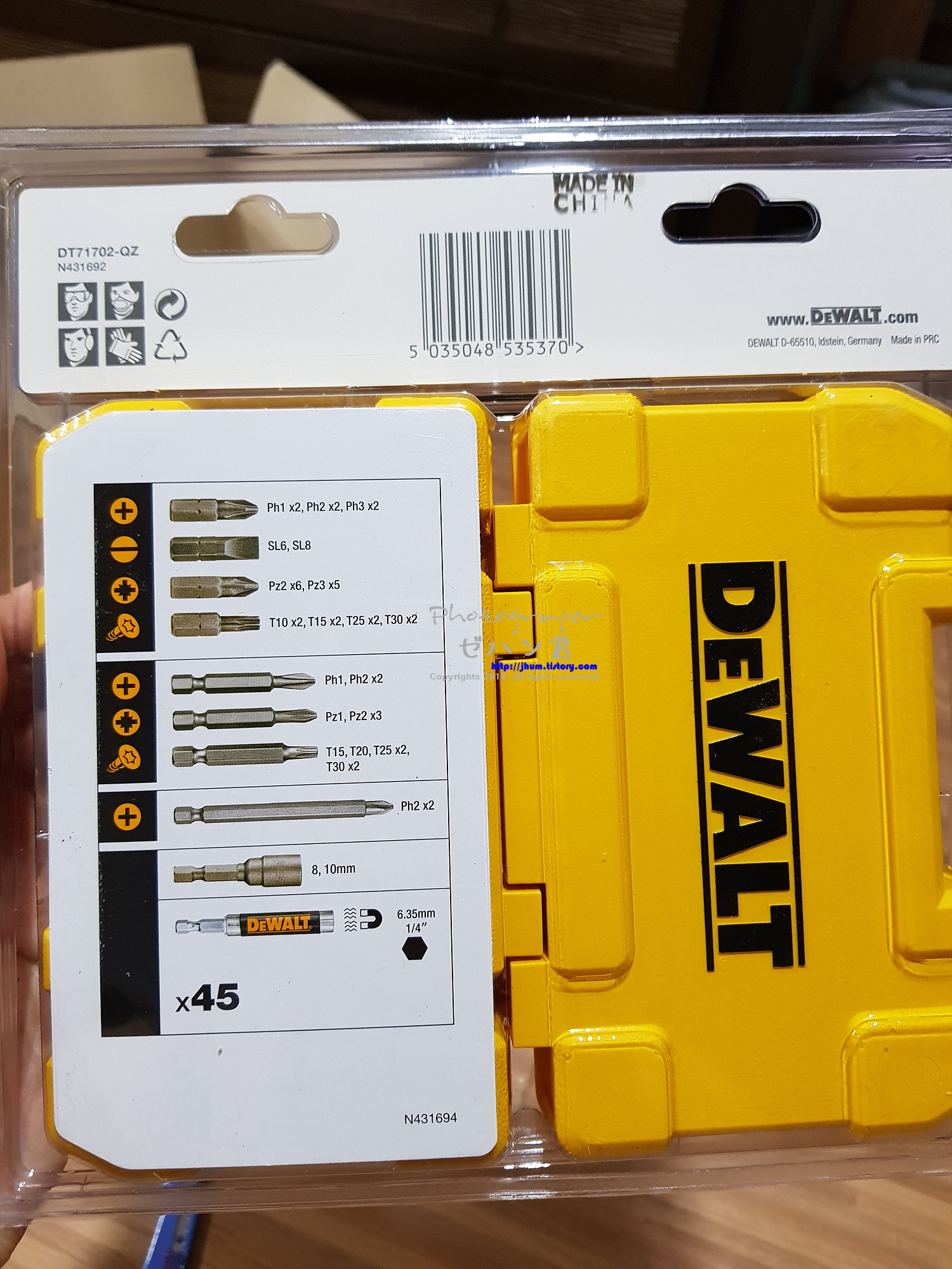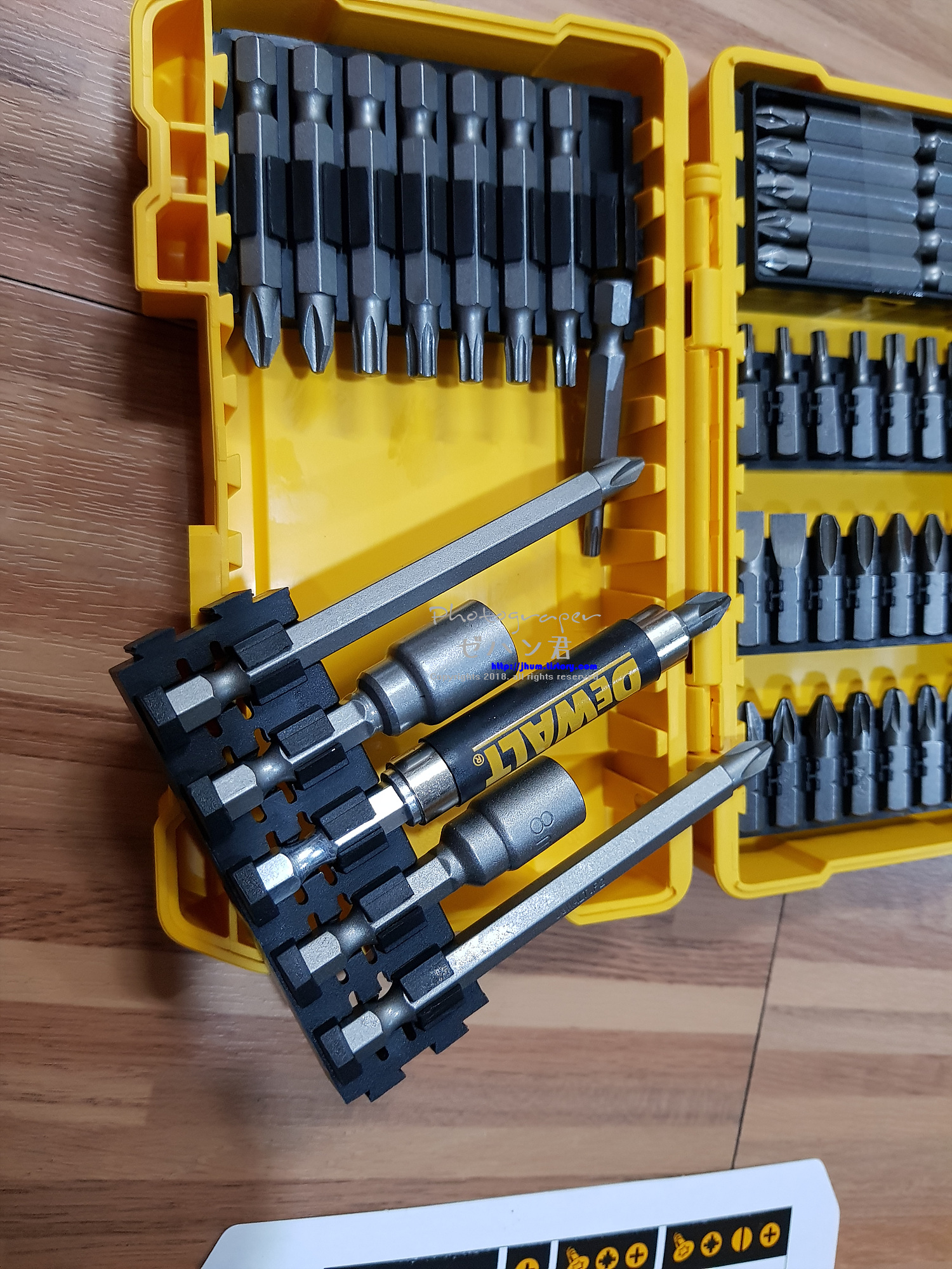 뭔가 돈이 아깝다는 생각이 안들게 빽빽하게 들어차 있고 생산은 중국산이긴 하지만 디월트 브랜드에 맞는 강한 느낌을 받게 됩니다.