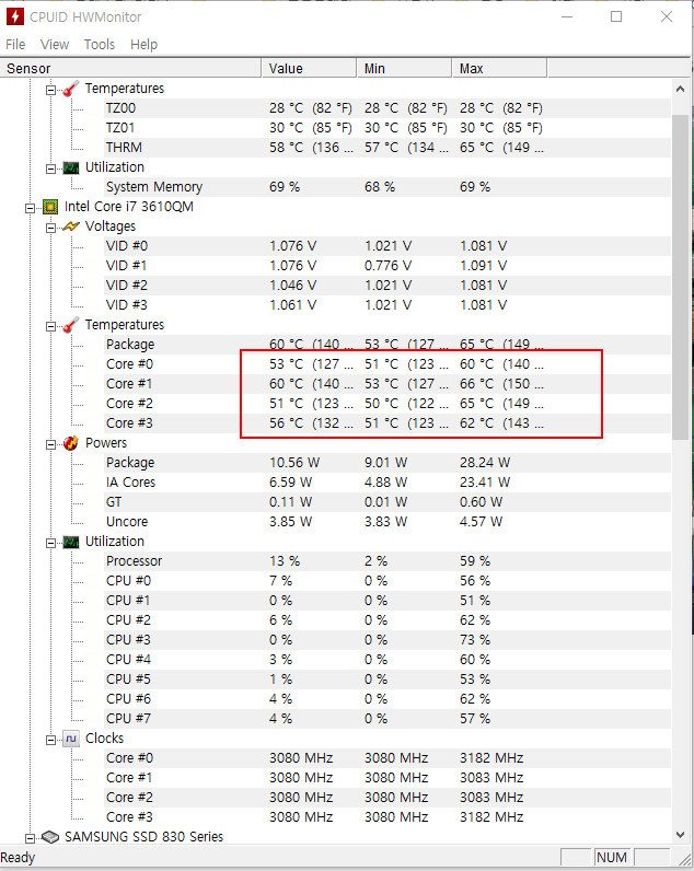아마도 게이밍 노트북이라 좋은 서멀구리스를 사용한게 아닌가 추측이 되네요.
