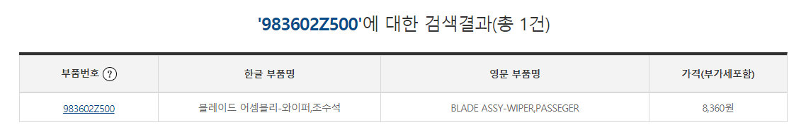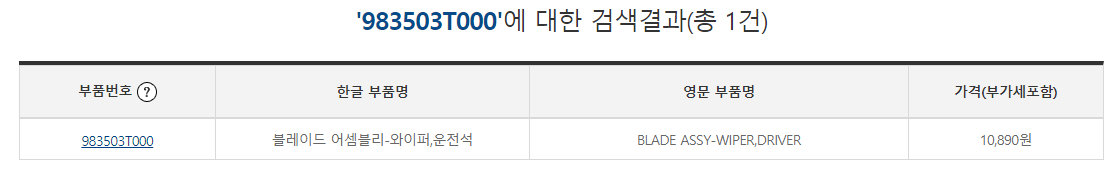 혹 그래도 8mm짜리 조수석이 좋고, 모비스 부품 대리점이 가까이 있는 분들을 위해 품번을 공유해드립니다.