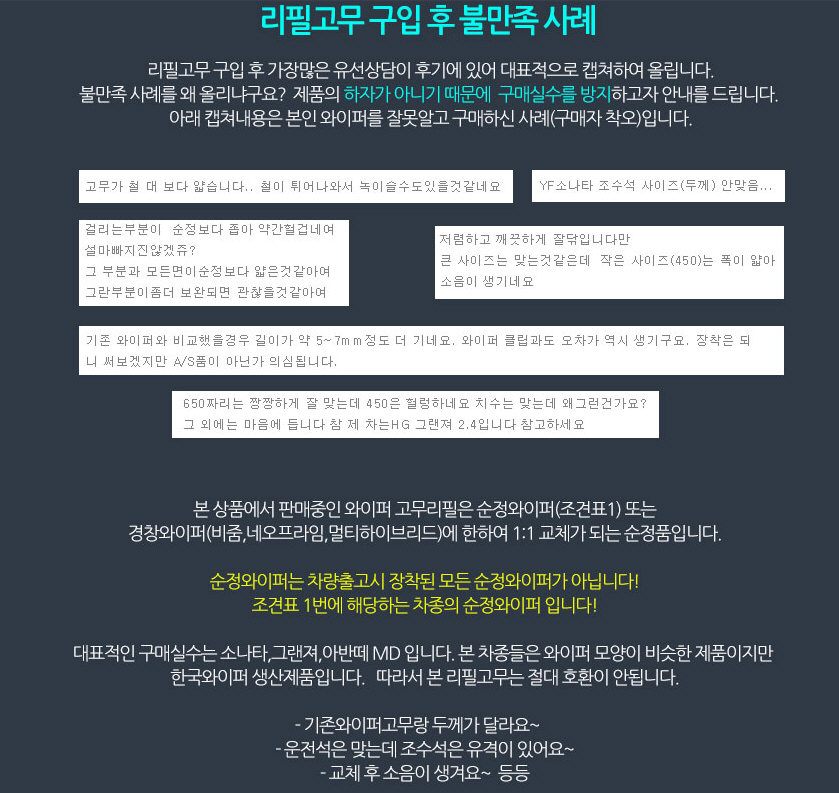 사실 이걸 모르고 현기차 타시는 분들이 비줌 리필고무를 샀다가 낭패보시는 케이스가 많다고 하니 주의하셔야 겠습니다.