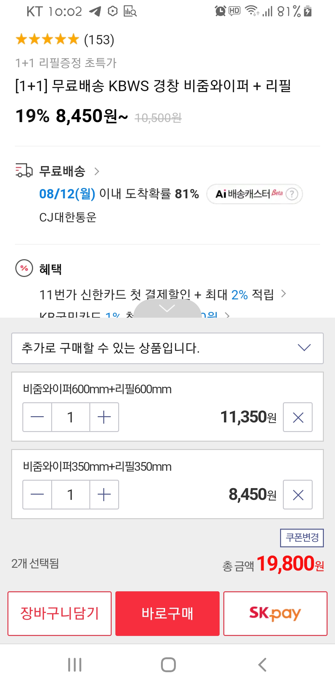 배송비 무료에 19,800원