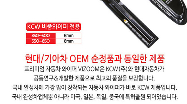 1. 스파크 순정 조수석이 비줌의 스펙과 동일하다. (아반떼 MD차량 350mm와이퍼의 경우 고무 러버의 두께가 8mm입니다. 비줌과 스파크 순정은 6mm)