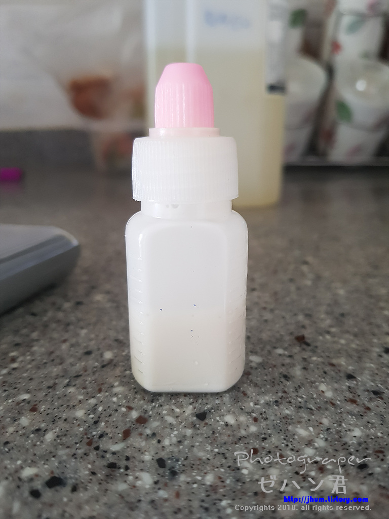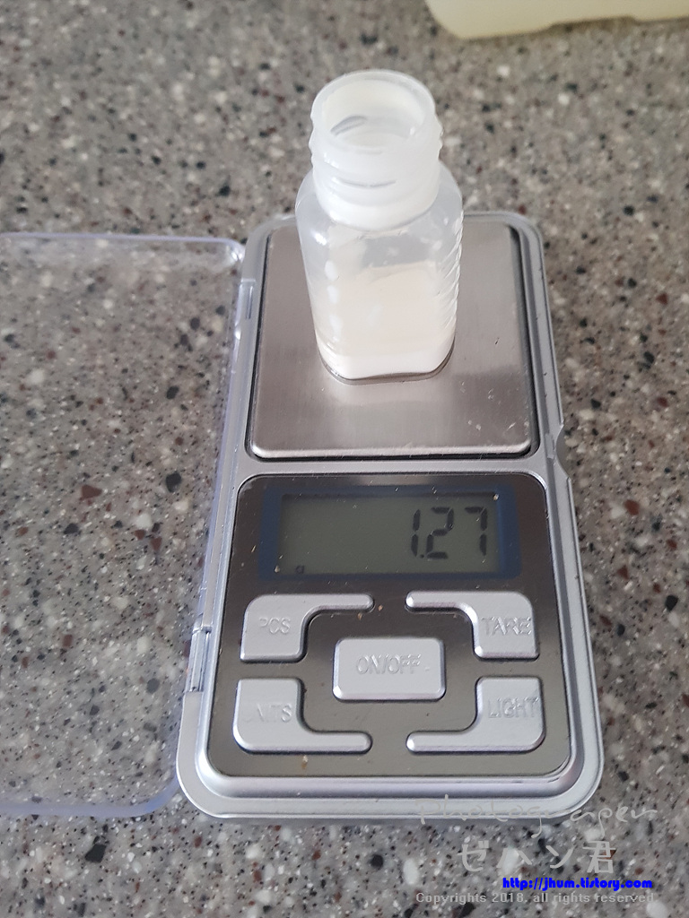 스포이드가 없어서 정확히는 못맞췄는데 대략 1g들어갔다고 생각하고