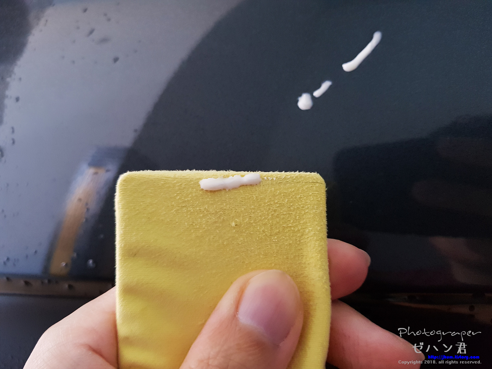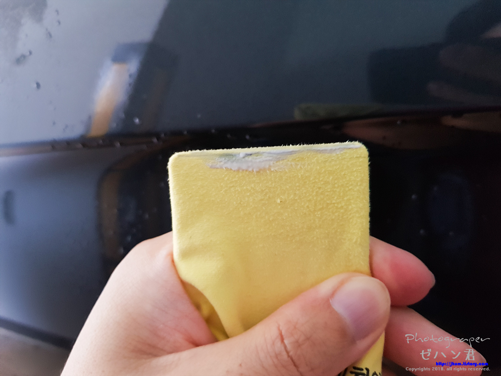 작업이 마무리 되면 3000방 컴파운드로 주변에 혹시 생겼을지 모를 잔 스크레치들을 지워줍니다.