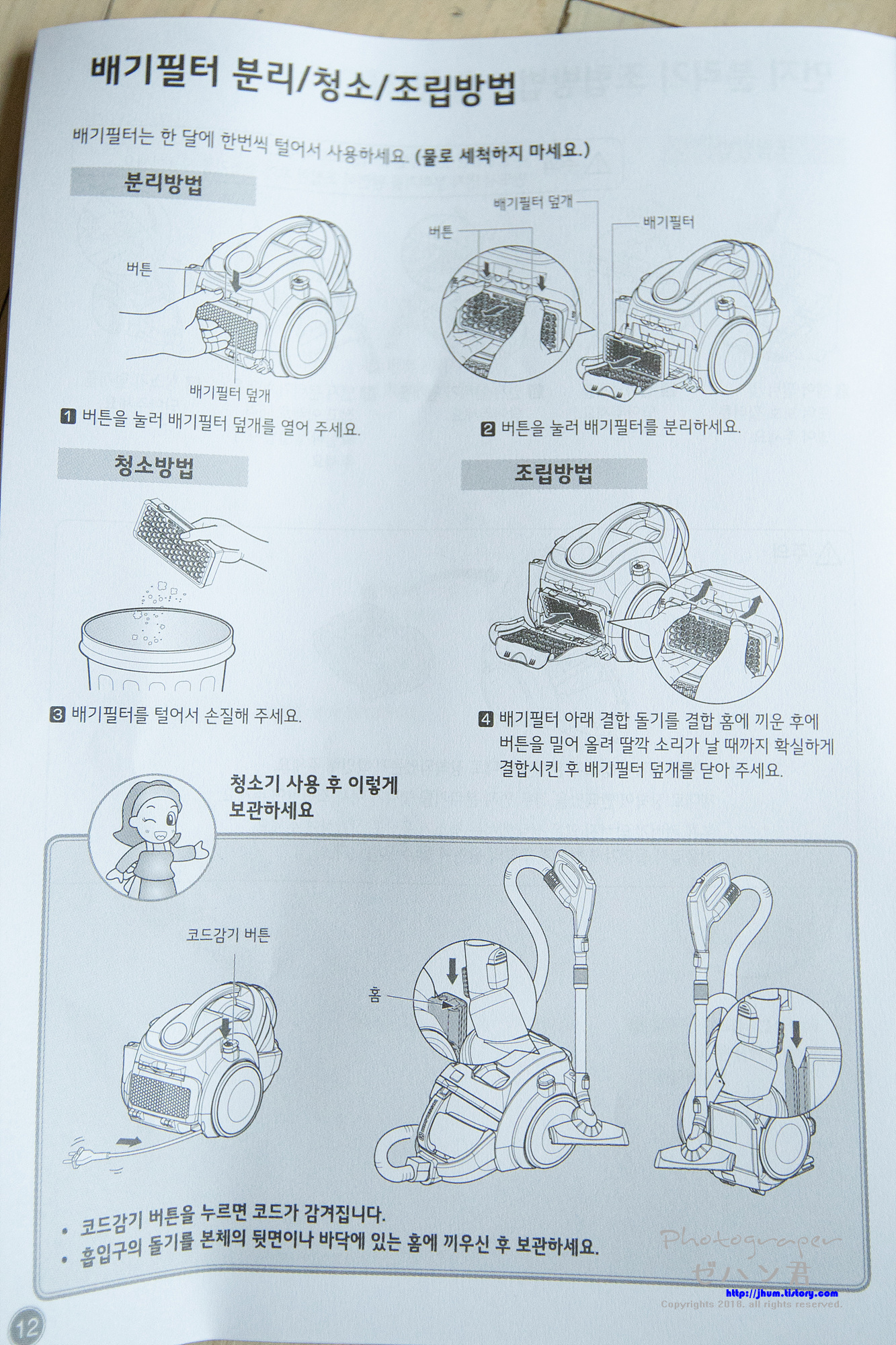 헤파필터는 당연히 털기만 하셔야 합니다.