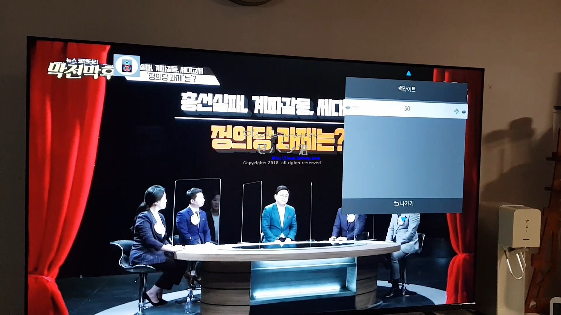 TV를 켜보니 백라이트 기능이 추가되어 있고 공장도 출하 기준 (백라이트 17) 47W 내외
