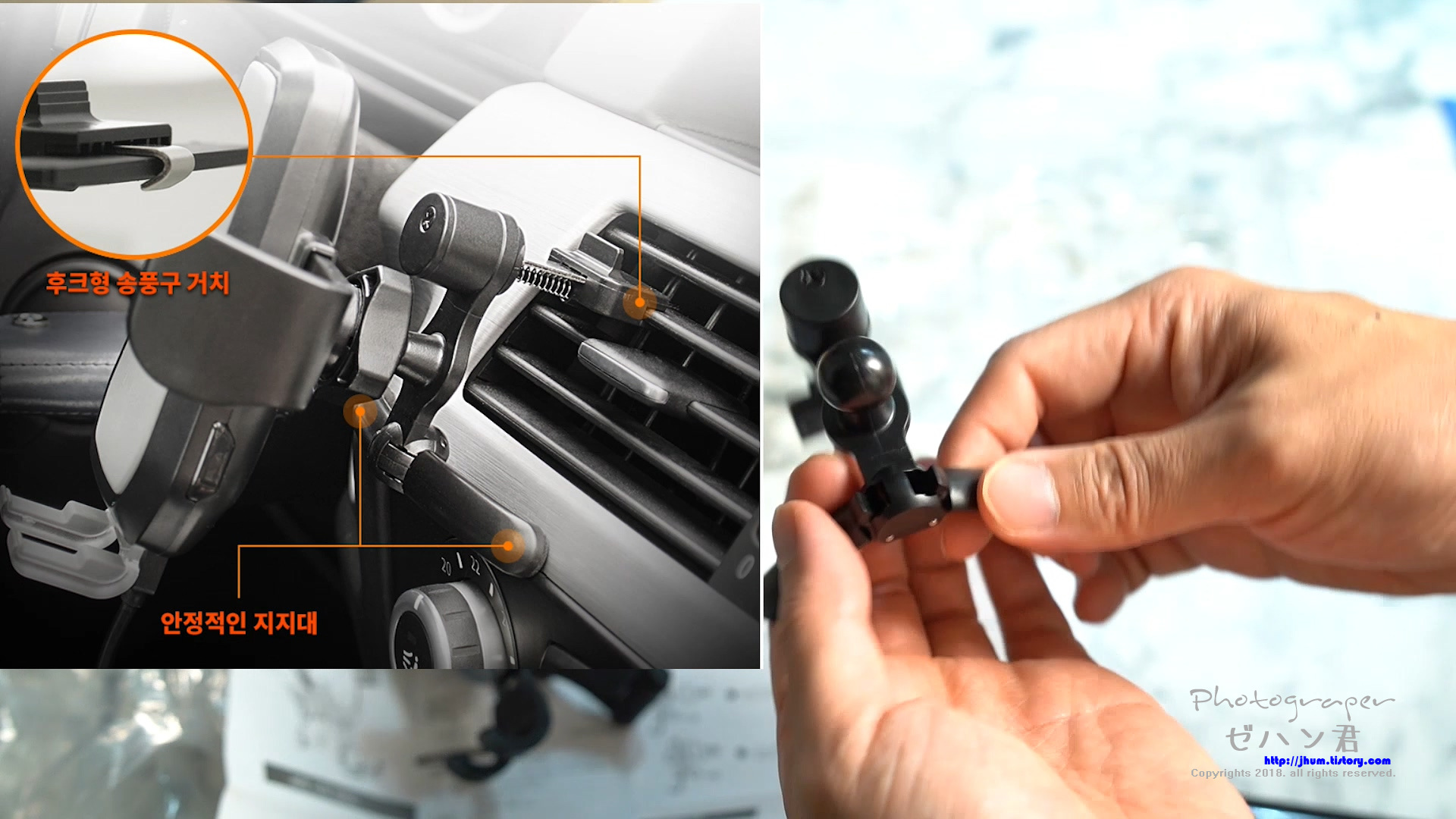장점은 아무래도 클립방식은 송풍구에서 빠질 수 밖에 없는 구조인데 이 녀석은 그렇지 않단는 점이겠네요.