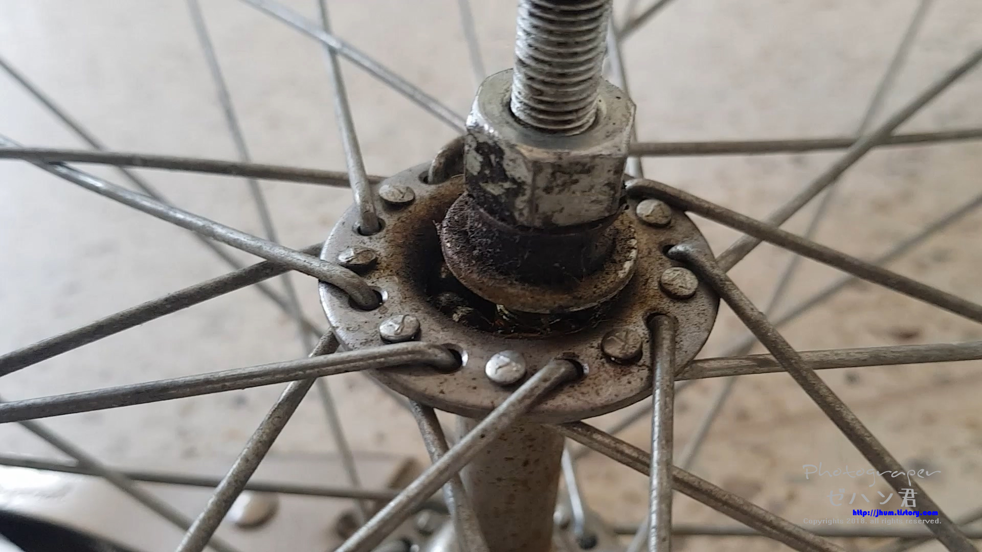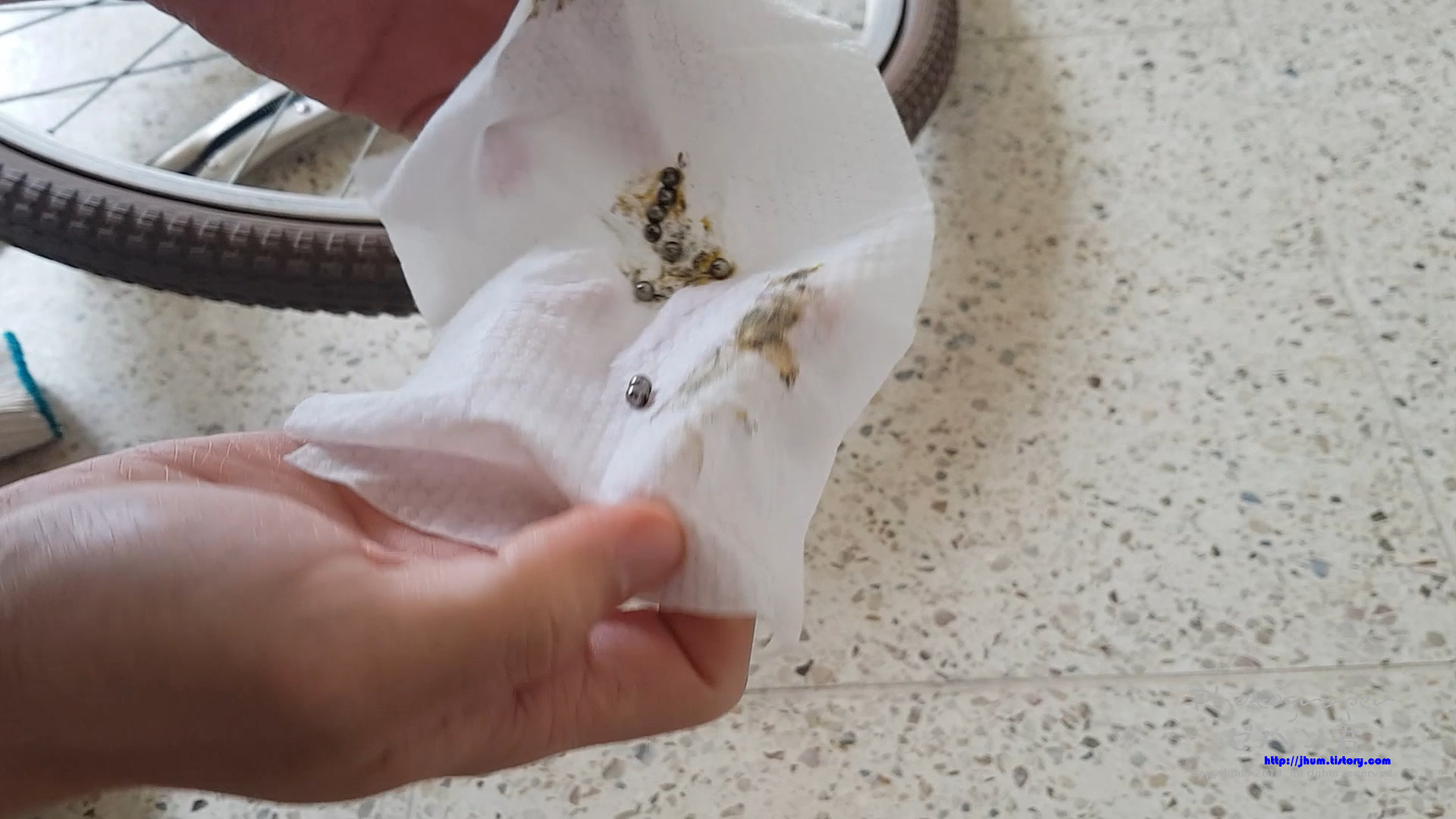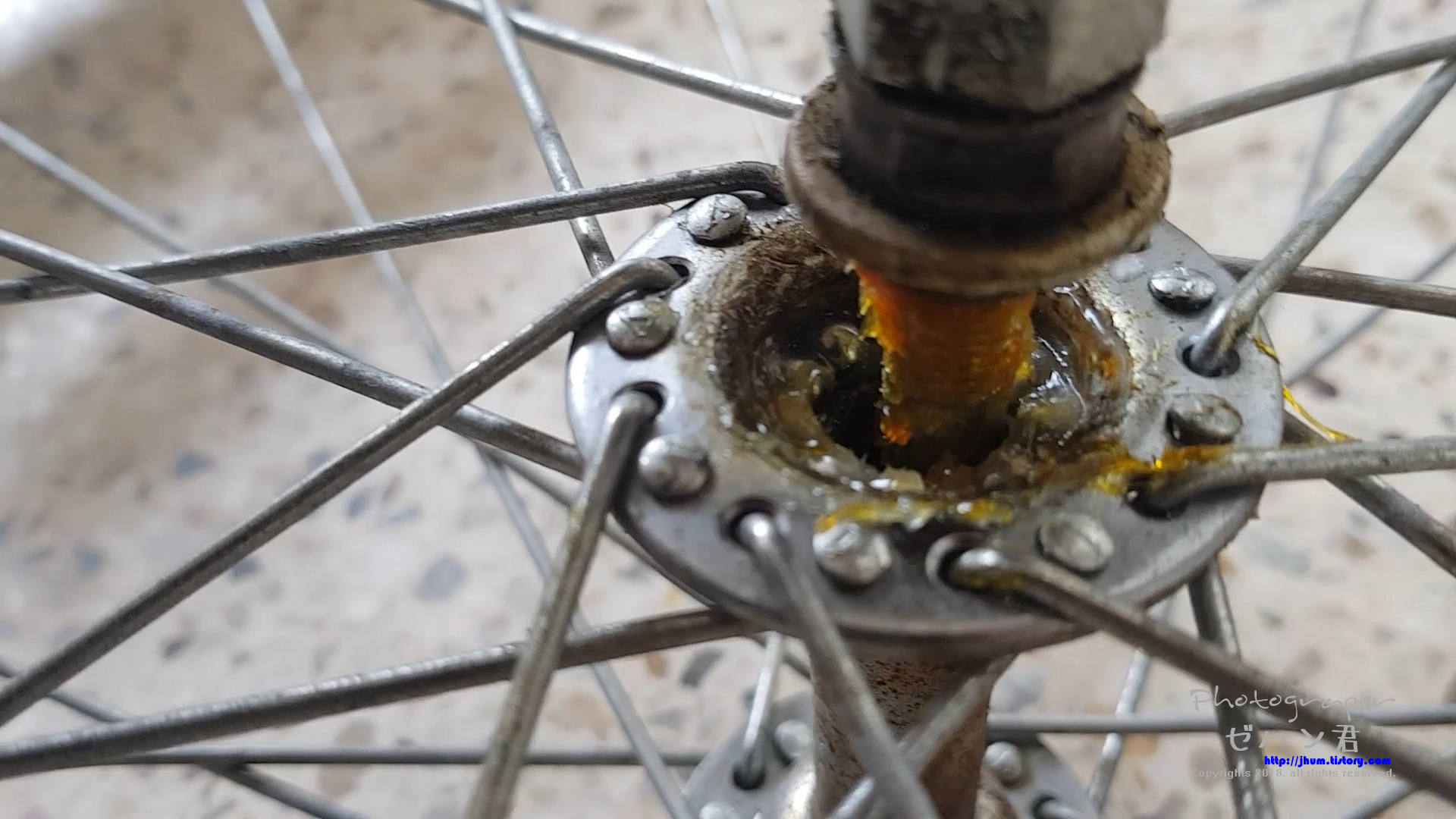 유주 자전거 바퀴가 뭔가에 걸리는 느낌이 들면서 잘 나가지 않아 허브 베어링 정비를 해주었습니다.