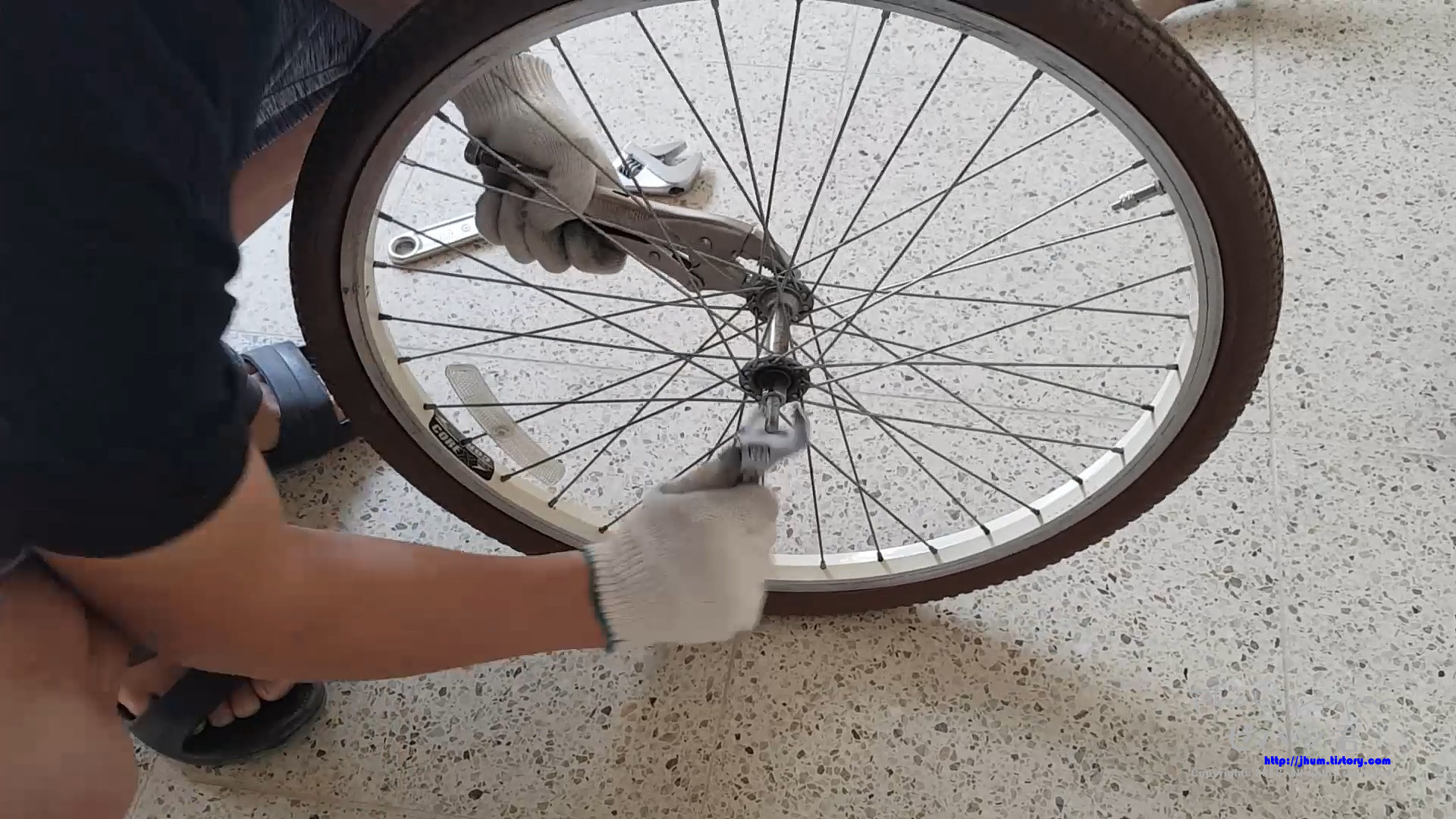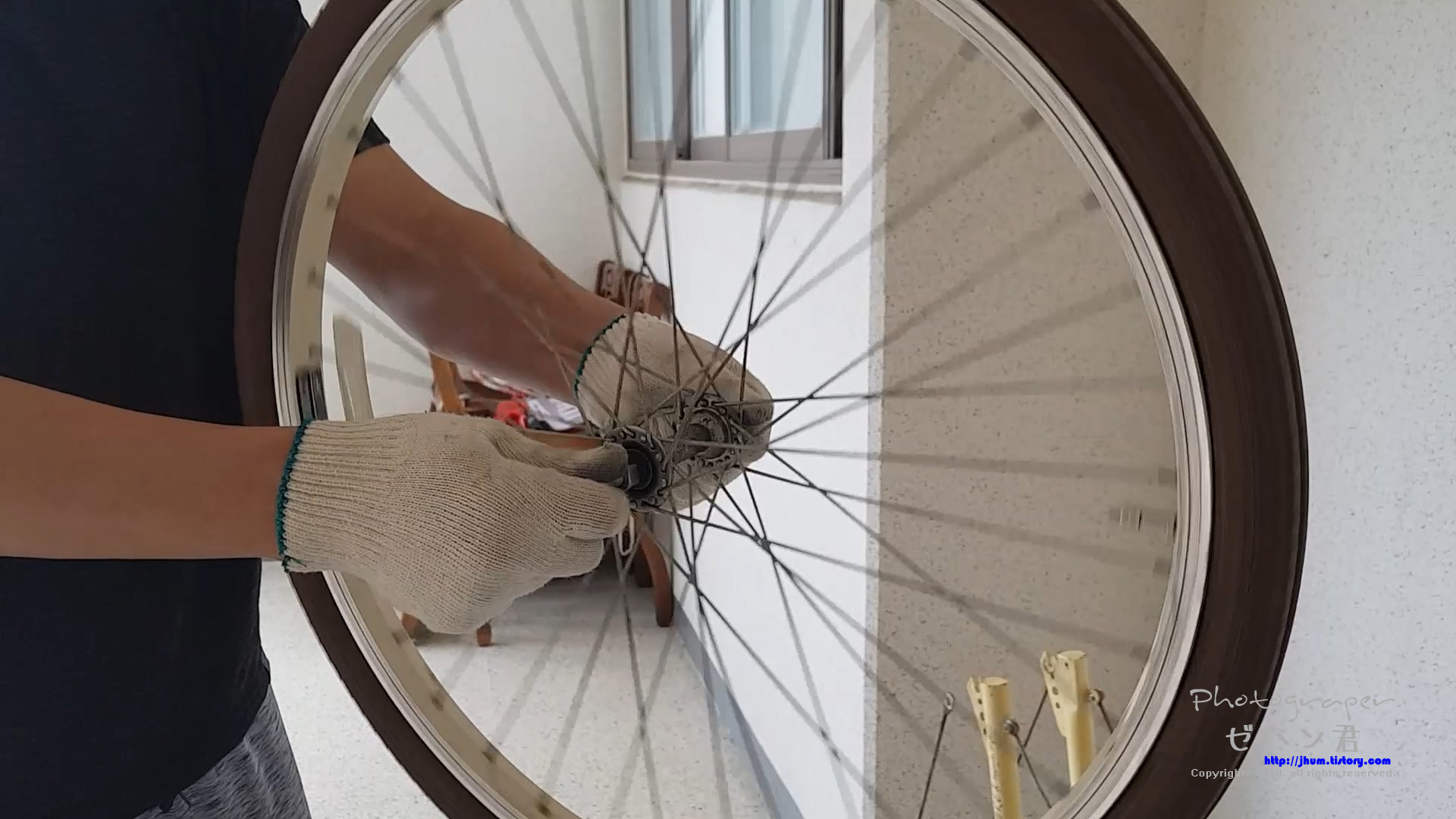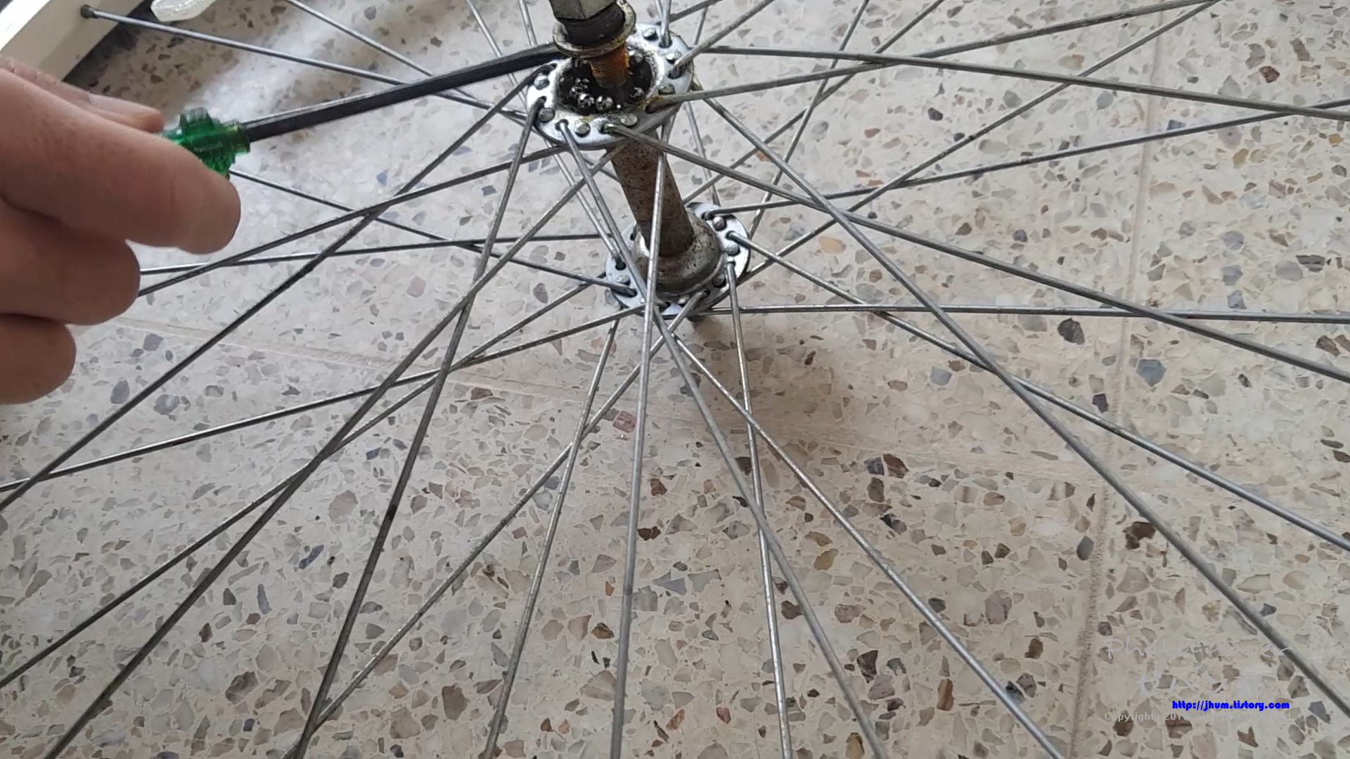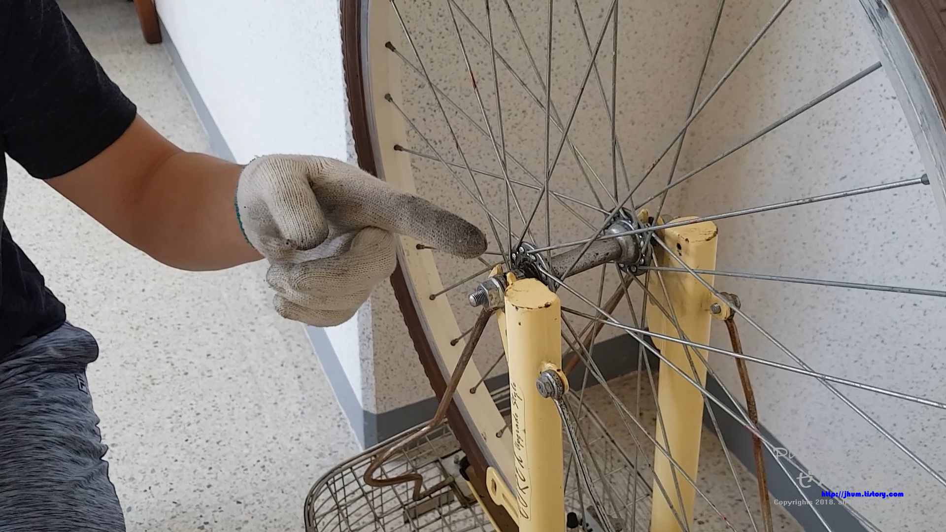 유주 자전거 바퀴가 뭔가에 걸리는 느낌이 들면서 잘 나가지 않아 허브 베어링 정비를 해주었습니다.