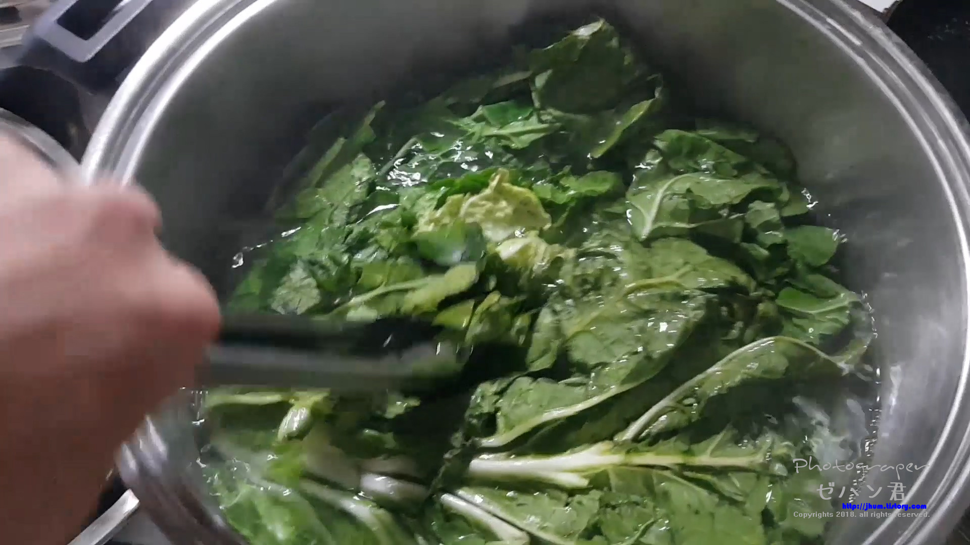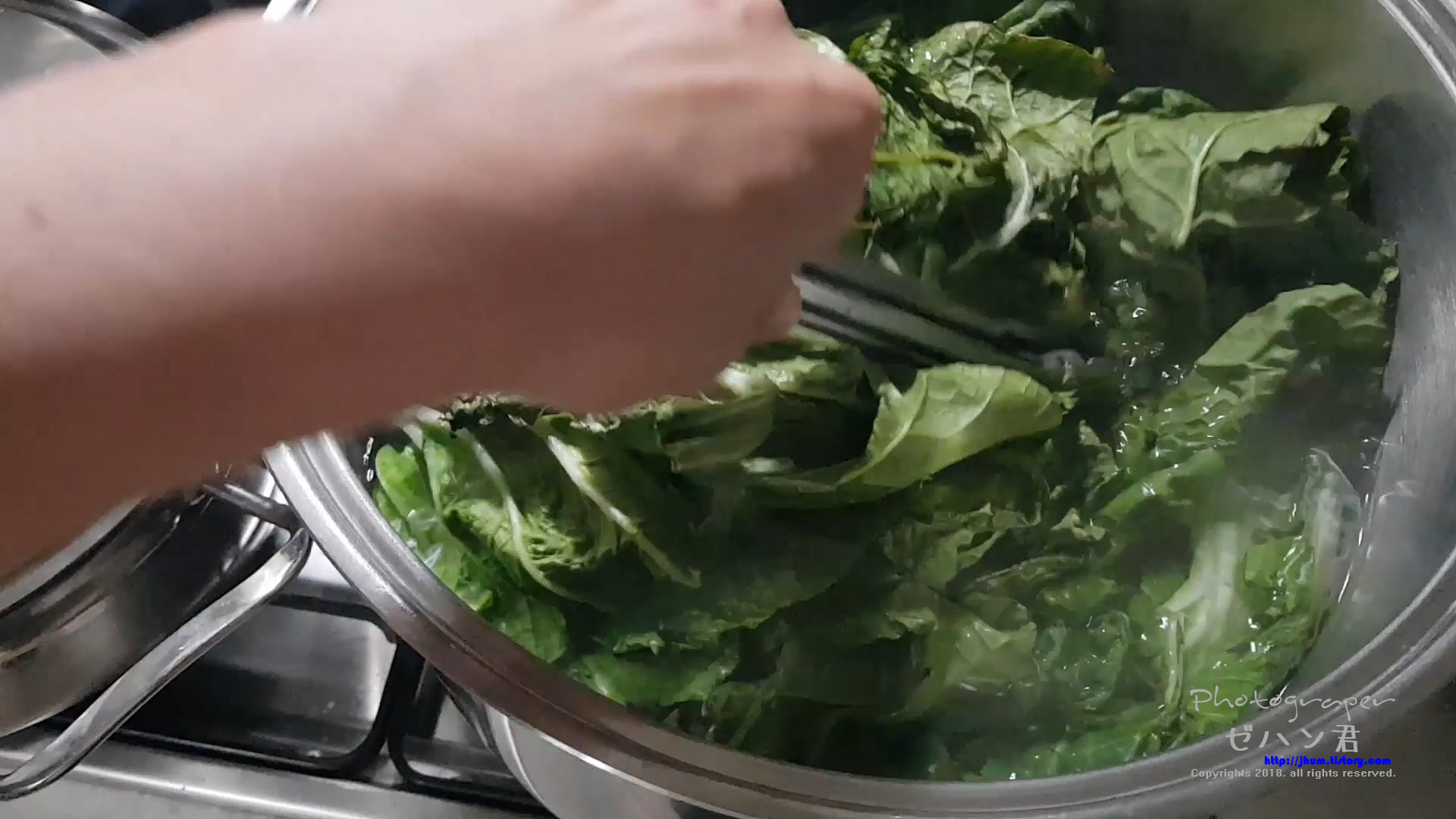 3분정도 경과하면 잎 부분도 삶기도록 집개로 눌러 줍니다.