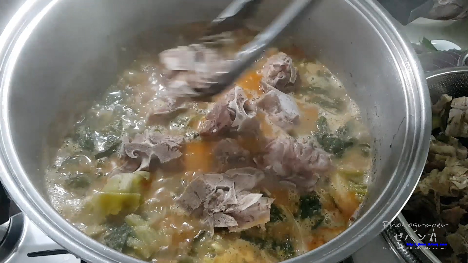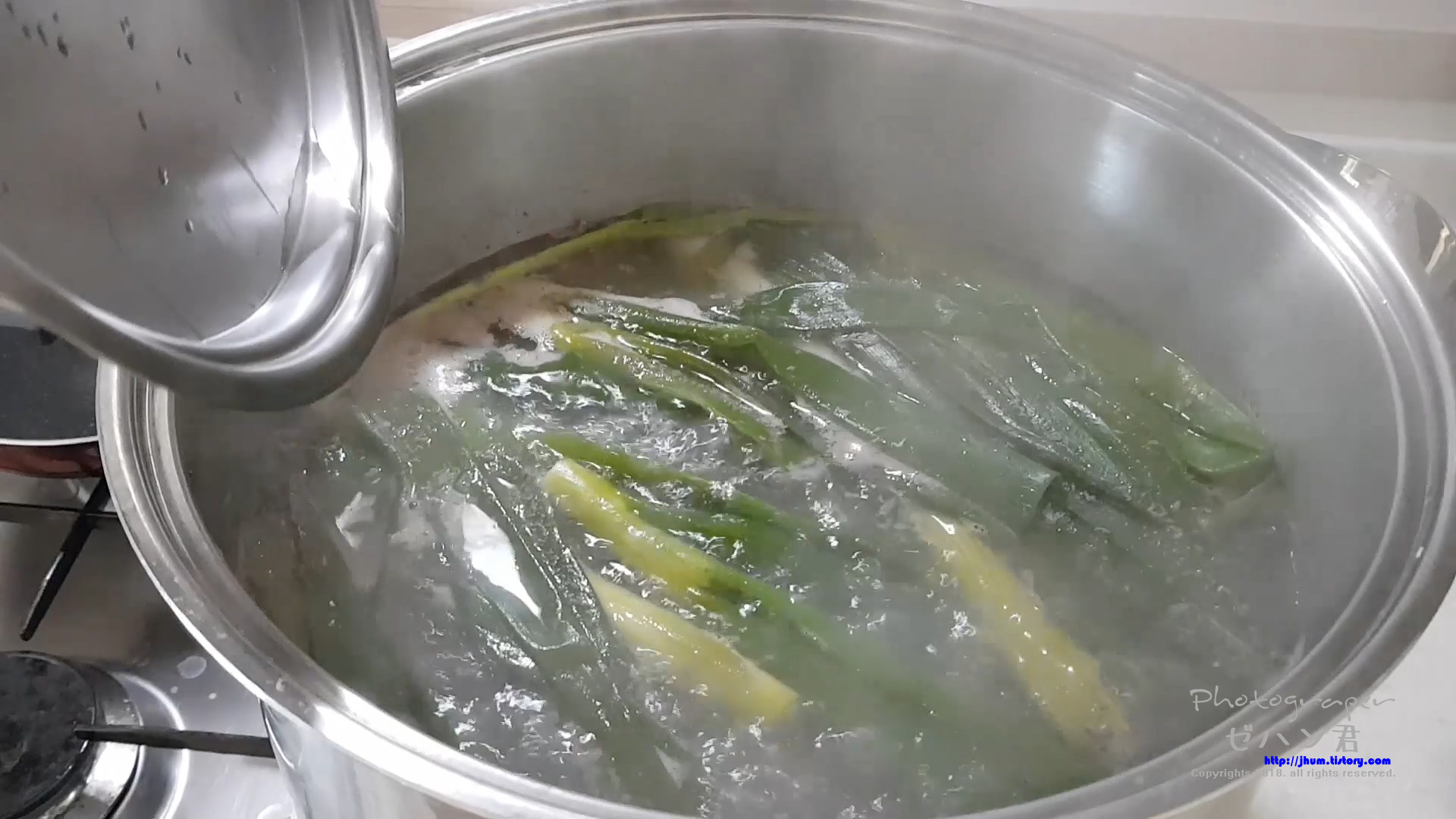 대파 2.5 뿌리를 넣고 1시간 중불로 삶아줍니다. 육수를 뽑는 과정이라고 보시면 됩니다.