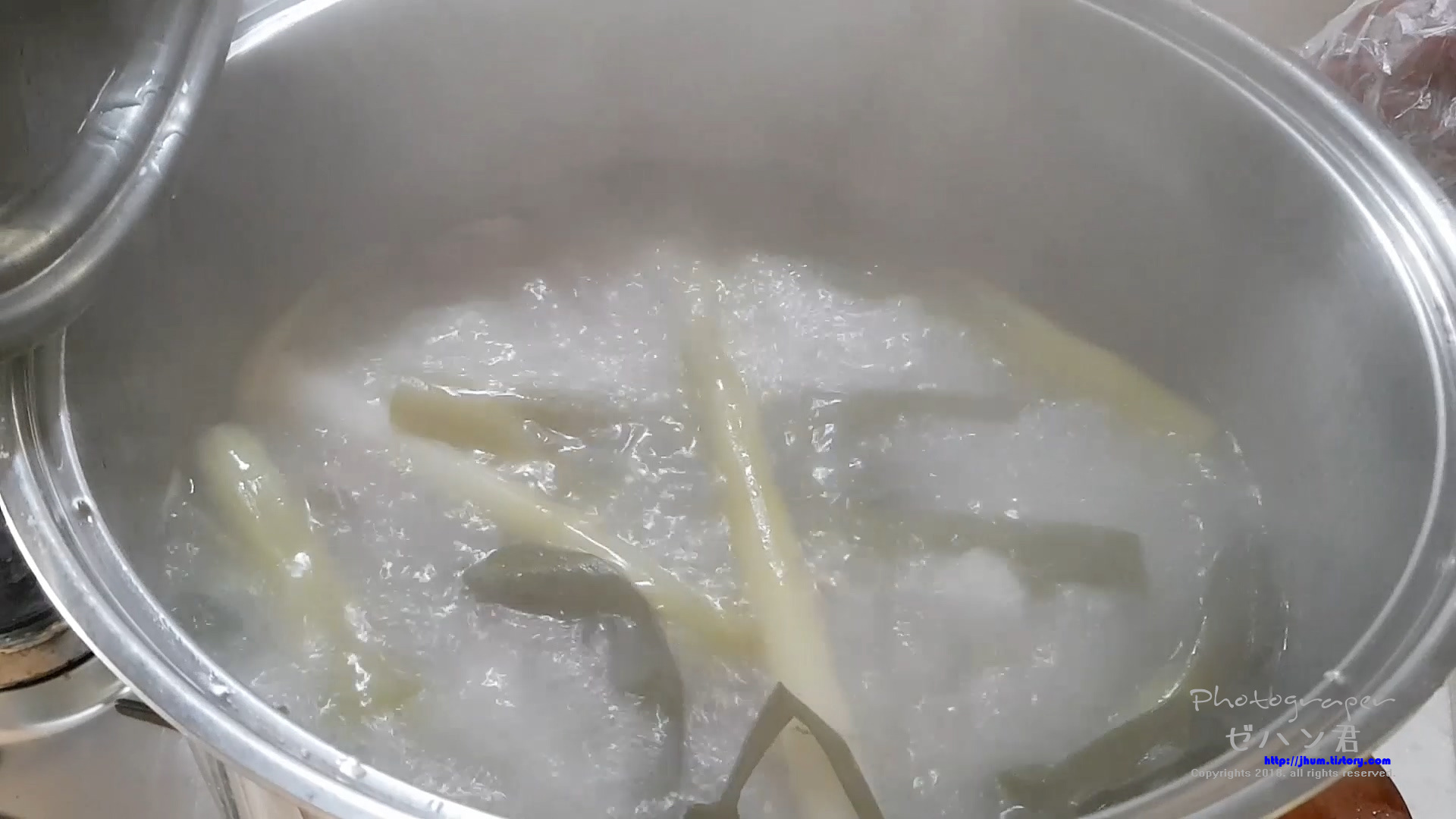 1시간 푹 삶아지면 파는 건져서 버리거나 아니면 잘게 잘라서 감자탕에 넣어주세요.