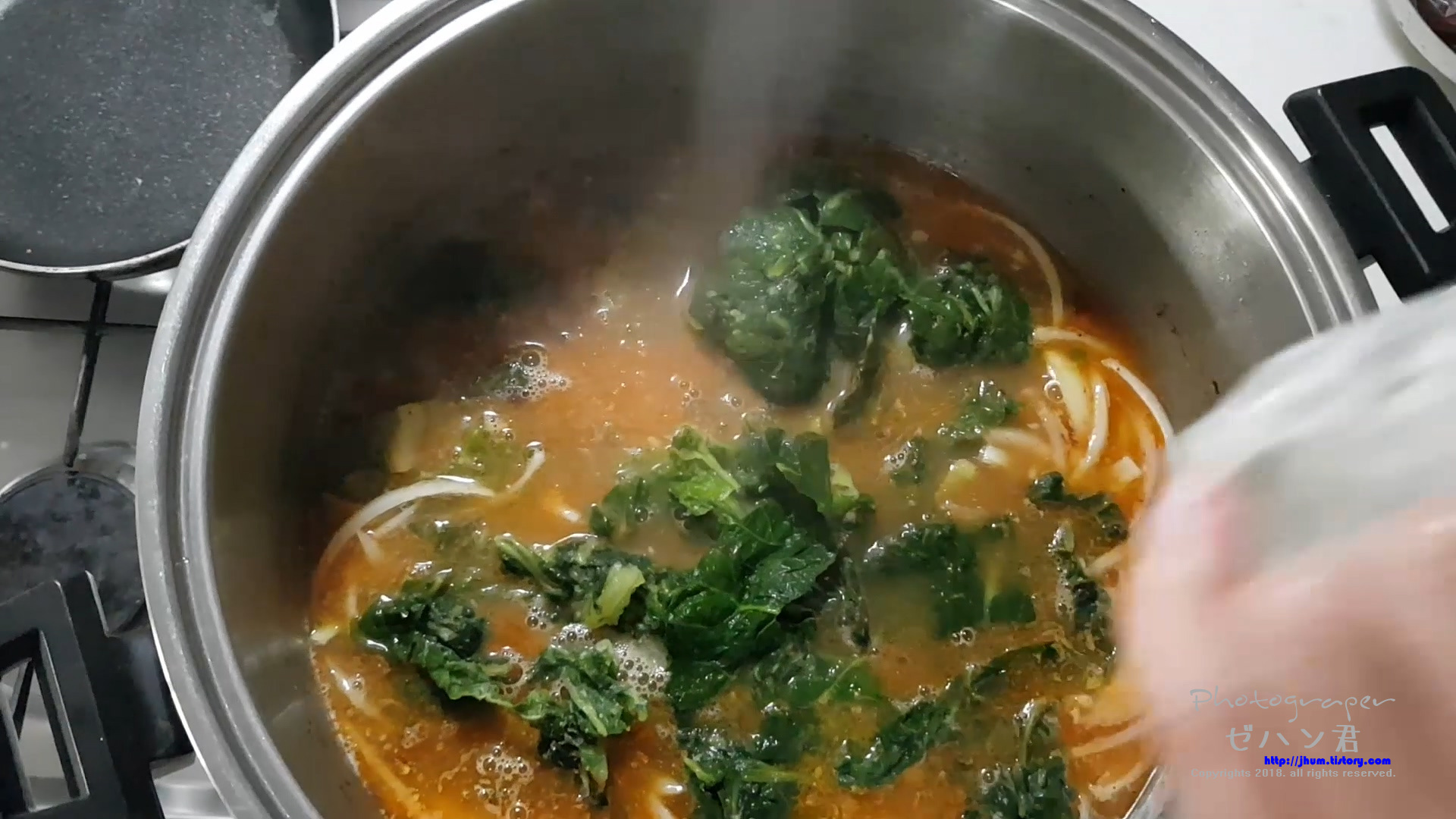 끓기 시작하면 국물 맛을 보시고 싱거우면 간장 2T(30g) + 소금으로 간을 하시면 됩니다.