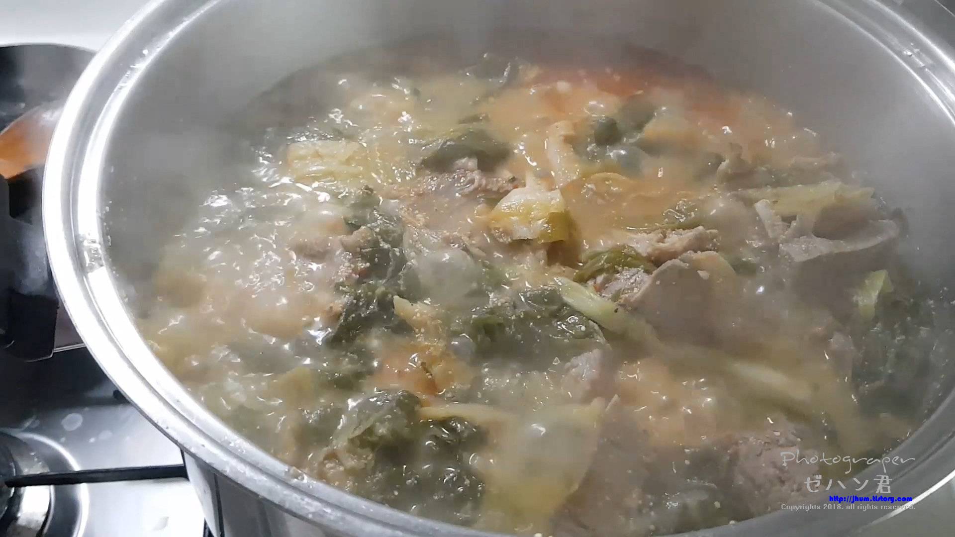 원래는 우거지를 된장에 버무려서 놔뒀다가 넣어야 하는데... 우거지가 해동이 늦어서 결국 된장 따로 우거지 따로 넣었습니다.