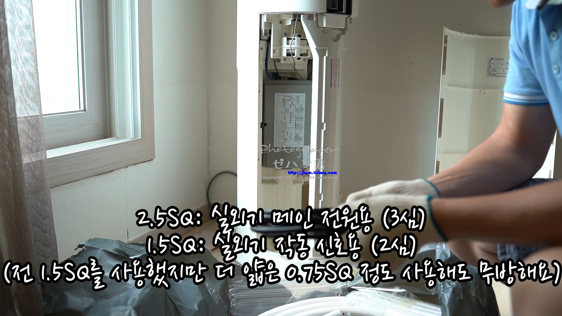 그리고 2.5SQ 3심 (실외기 메인 전원)이 짧게 나와 있는 것이 보이시죠?