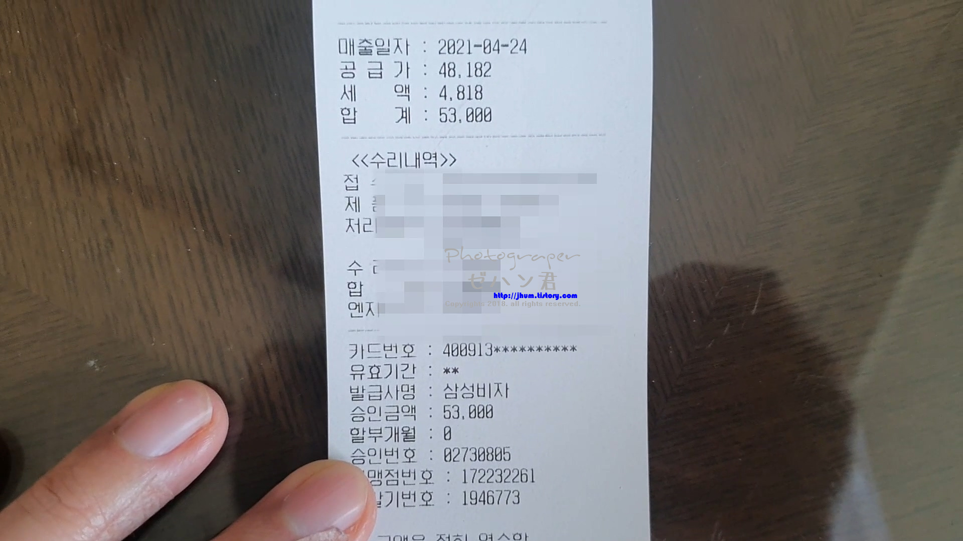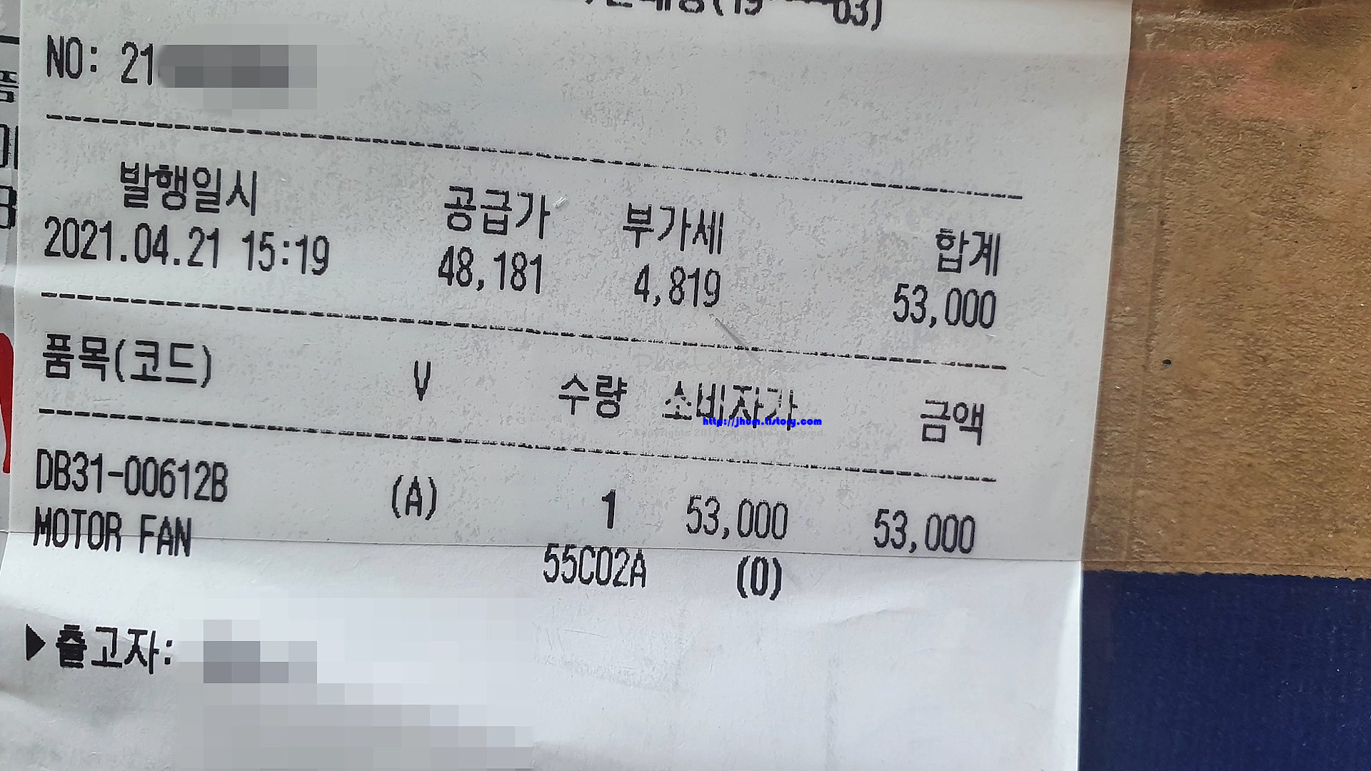 부품 가격은 53,000원입니다.