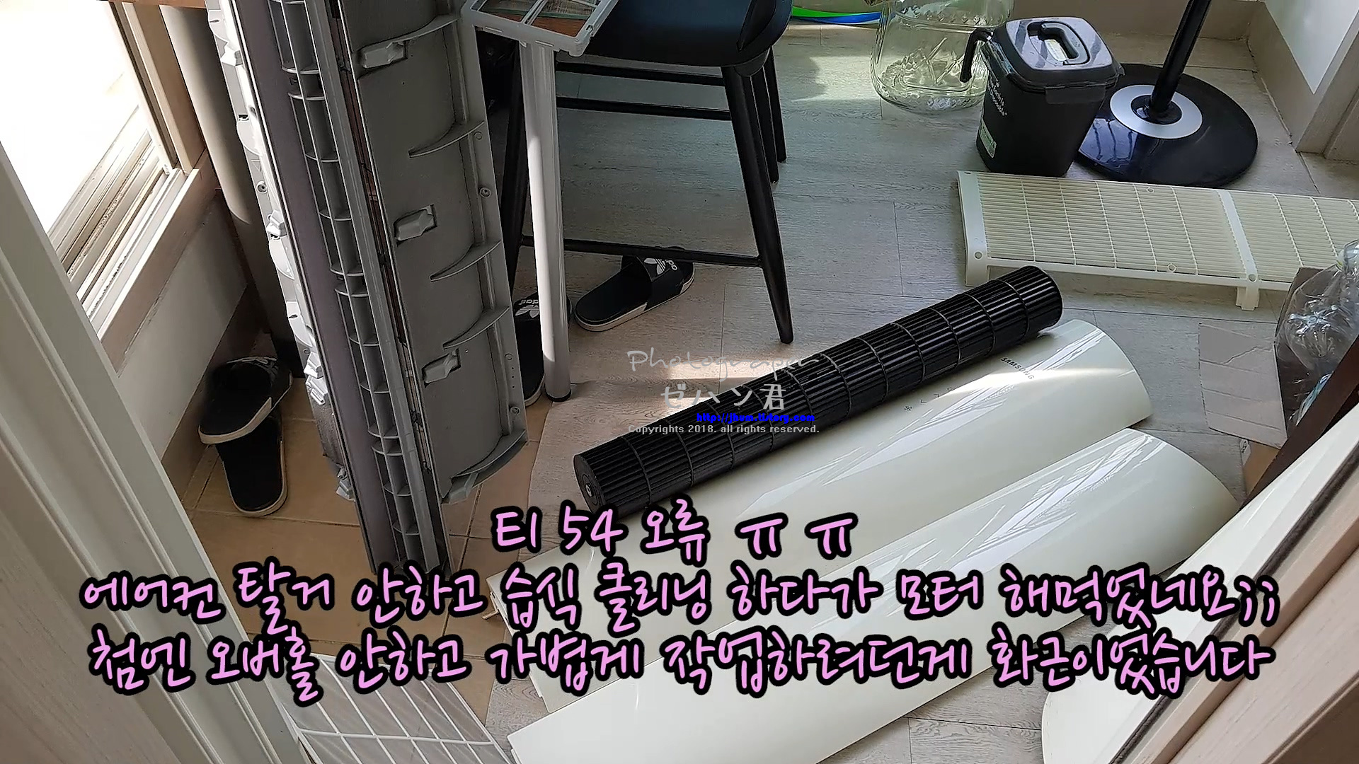 에어컨 분해하기 싫어서 락스 뿌리면서 솔질을 했던게 화근이었습니다....