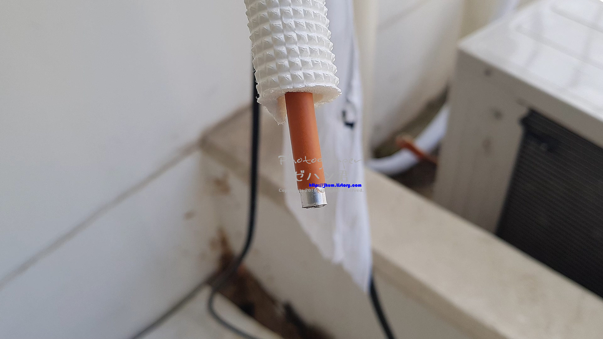 그리고 전 알루미늄배관의 피복을 일부 벗겼습니다.