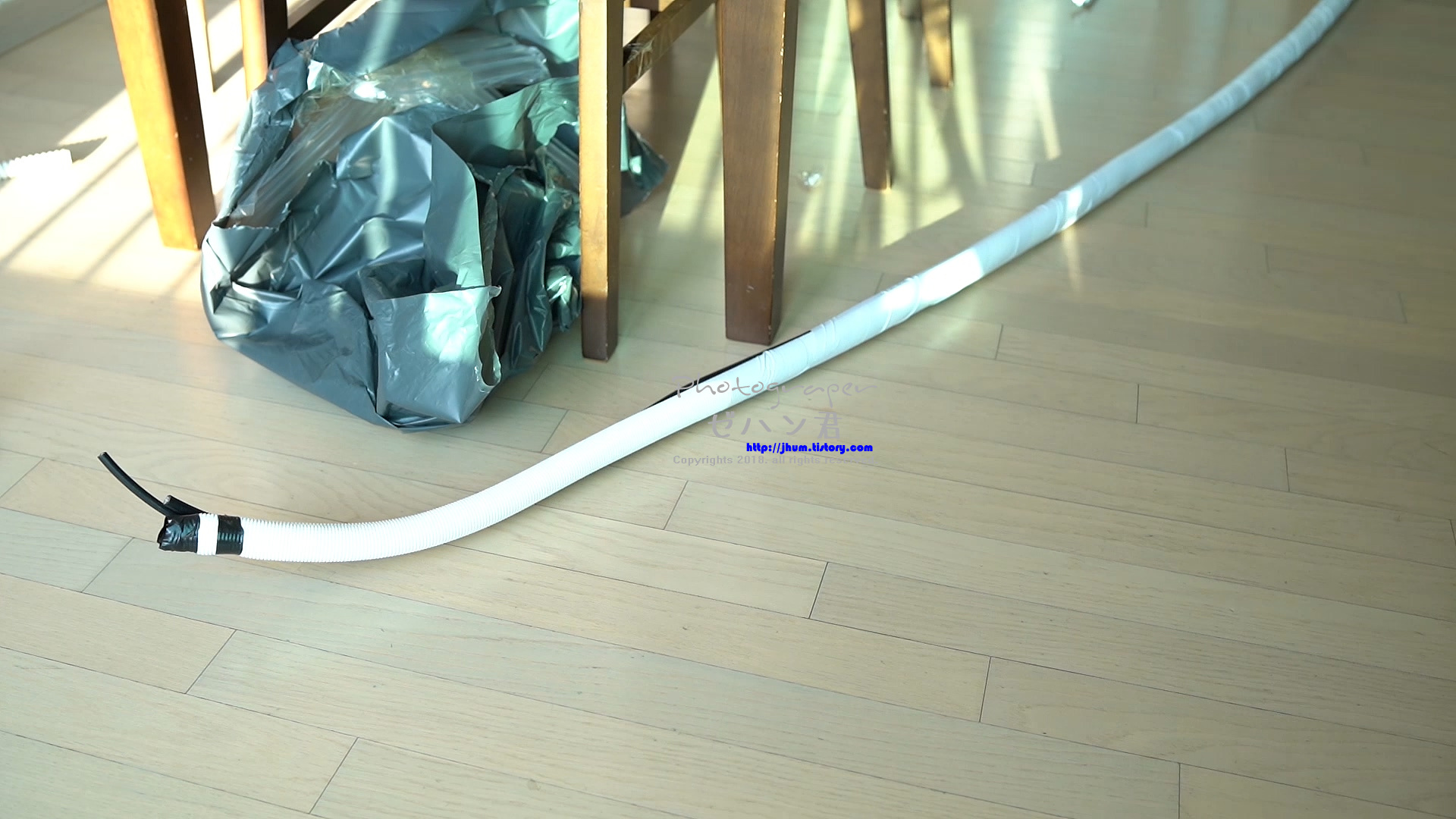 그리고 이렇게 배관에 끼우고 안빠지게 전기 테잎으로 감아주세요.