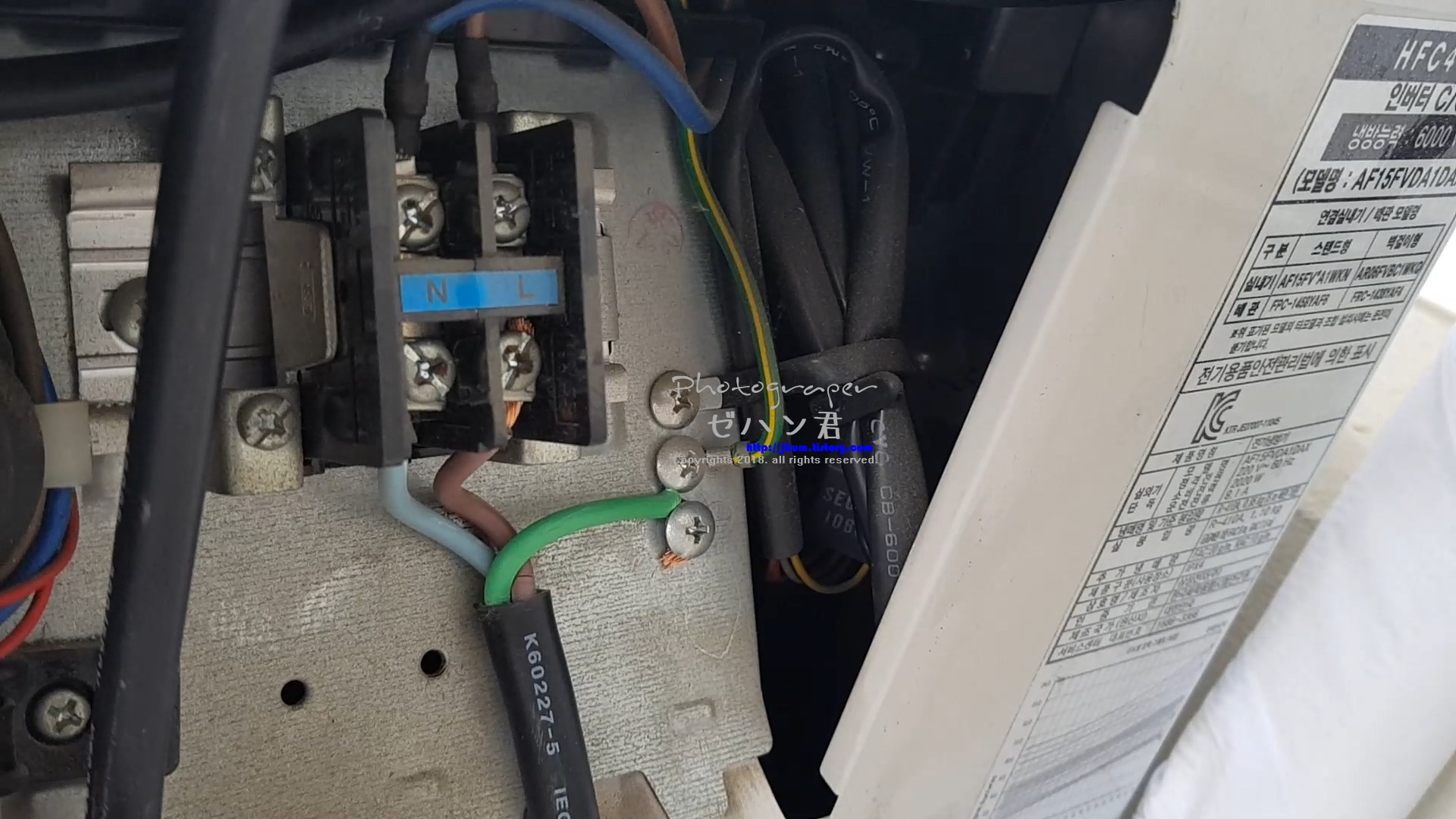 Earth선(어스, 접지)과 전원선을 2.5SQ 전선으로 연결해줍니다.