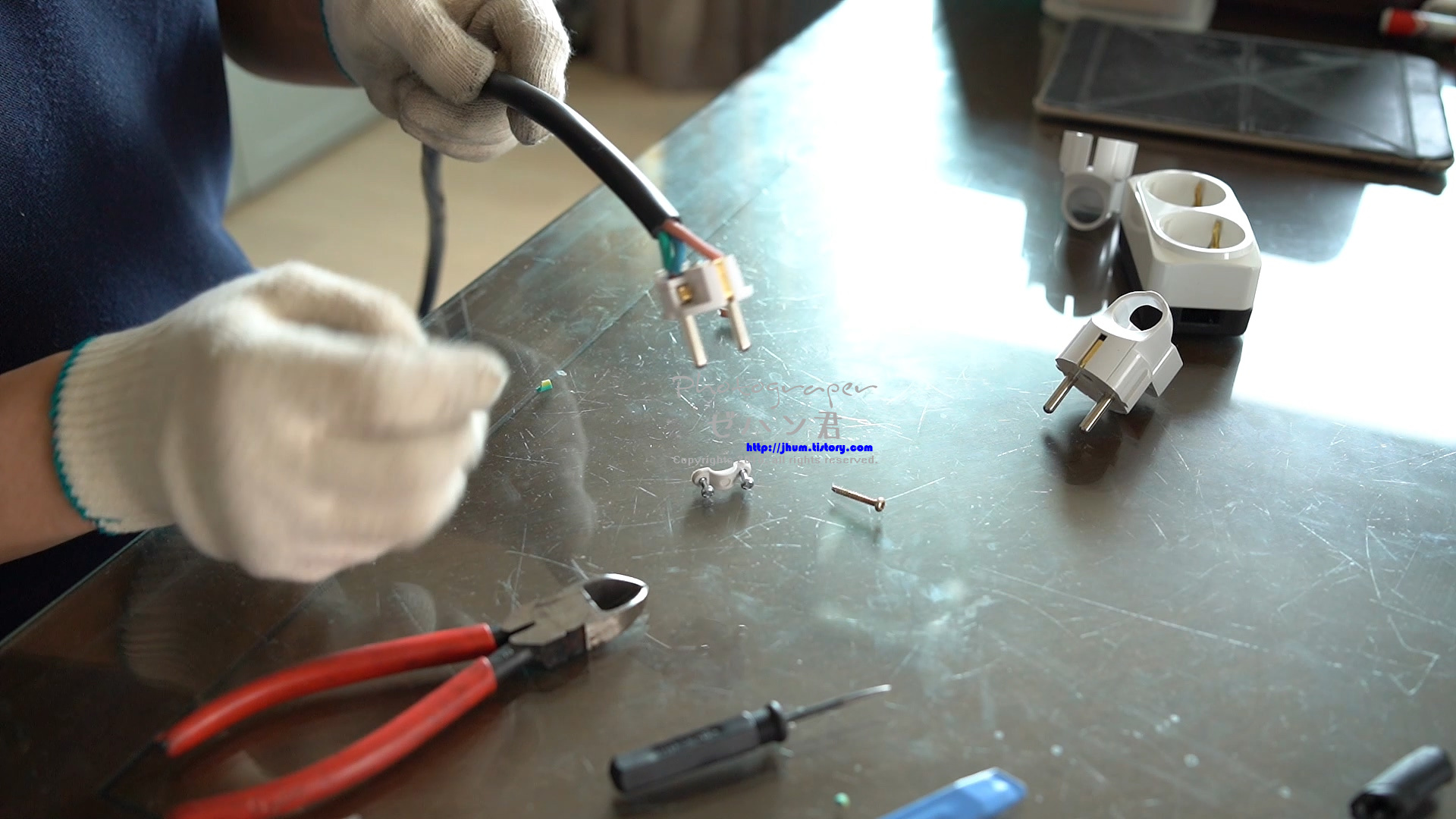 이제 전기 배선을 위해 콘센트와 플러그 작업을 해줍니다.
