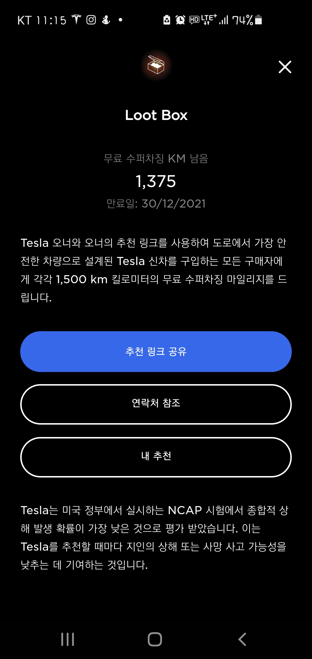 테슬라 차량 구매 예정이시면 1,500Km 마일리지를 받을 수 있는 레퍼럴 코드 꼭 이용해서 구매하세요~