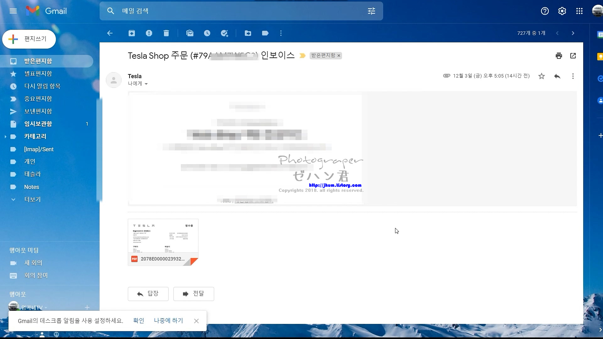 이 과정을 거치면 드디어 CCS1 아답터의 인보이스 메일을 아래와 같이 받게 되실 겁니다.