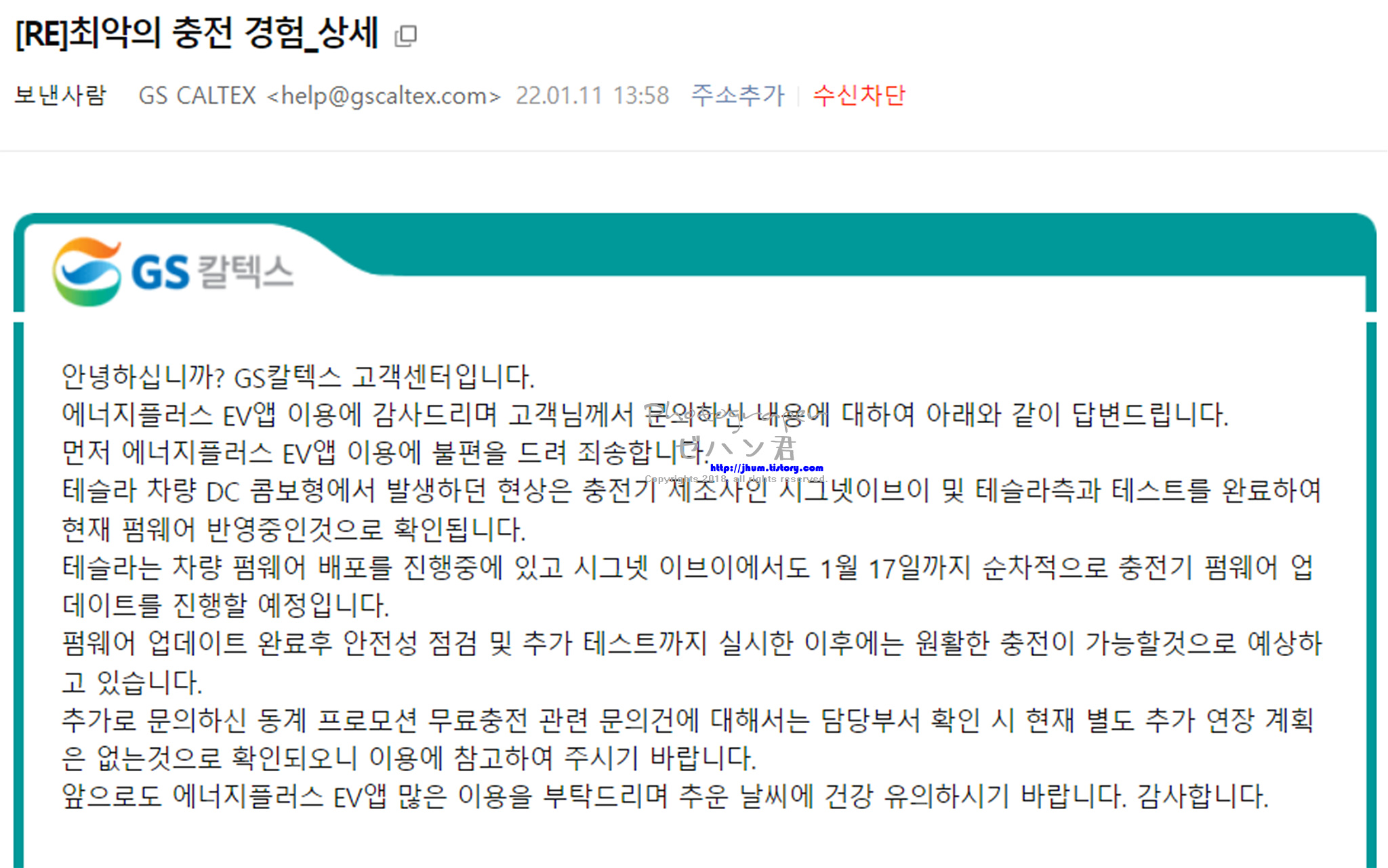 결국 이 포스팅을 하는 1월 20일 현재까지 GS충전기는 계속 오류가 나고 있습니다.
