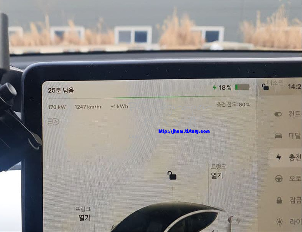 이건 진천 V3 슈퍼차저 충전 속도 SR이라 배터리가 작아서 이정도 속도가 최대인거 같아요.