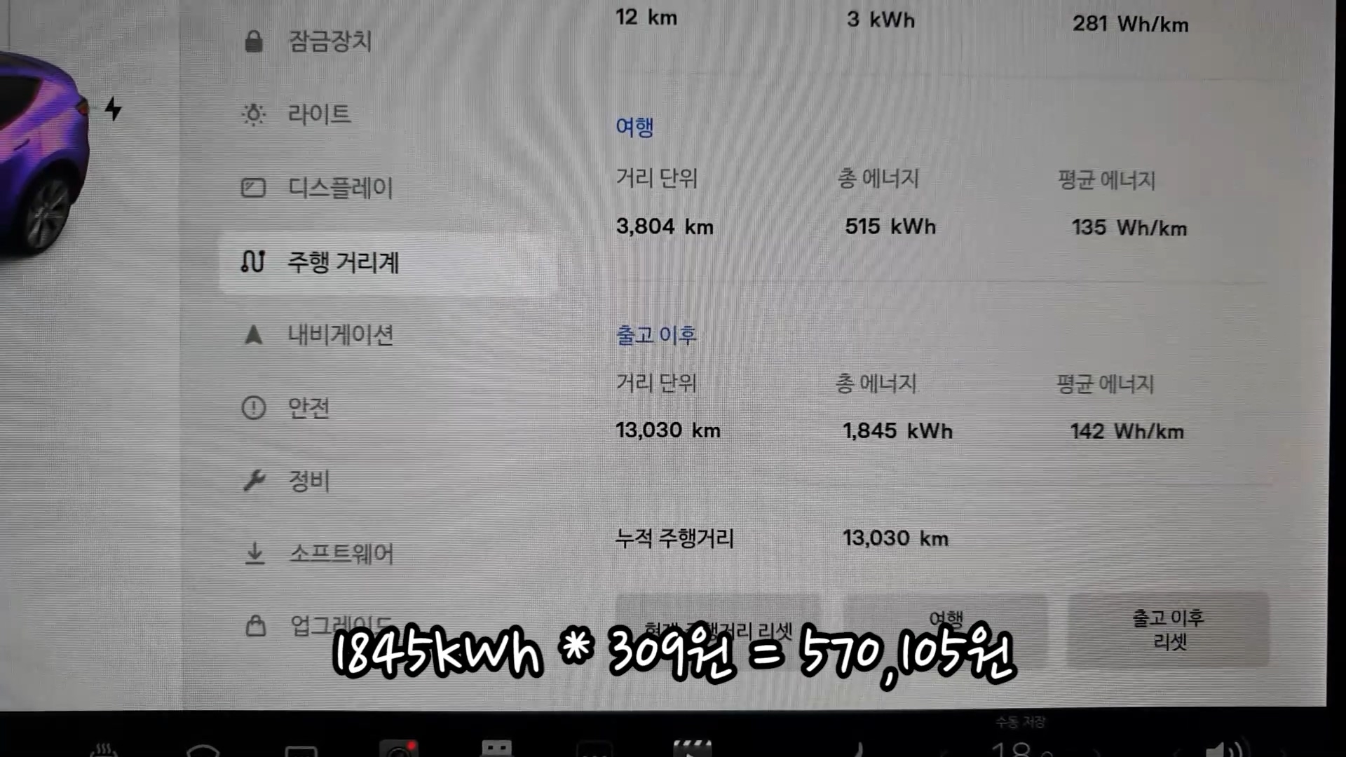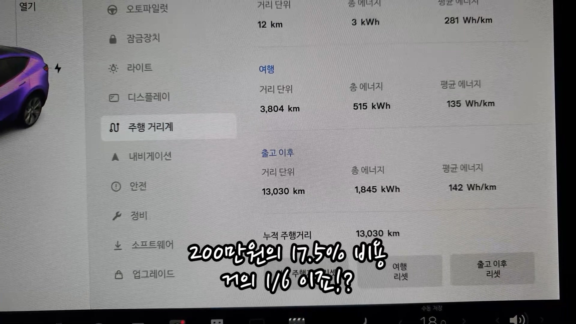 사고로 운행 못했던 3개월 빼고 13,000km 주행했네요.