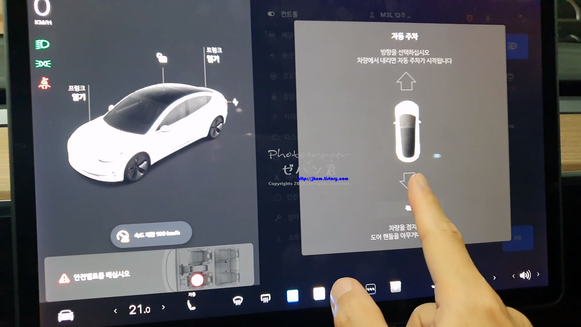 P버튼을 두번 누르면 활성화 되고 방향을 지정하고 내리면 주차를 시작해요